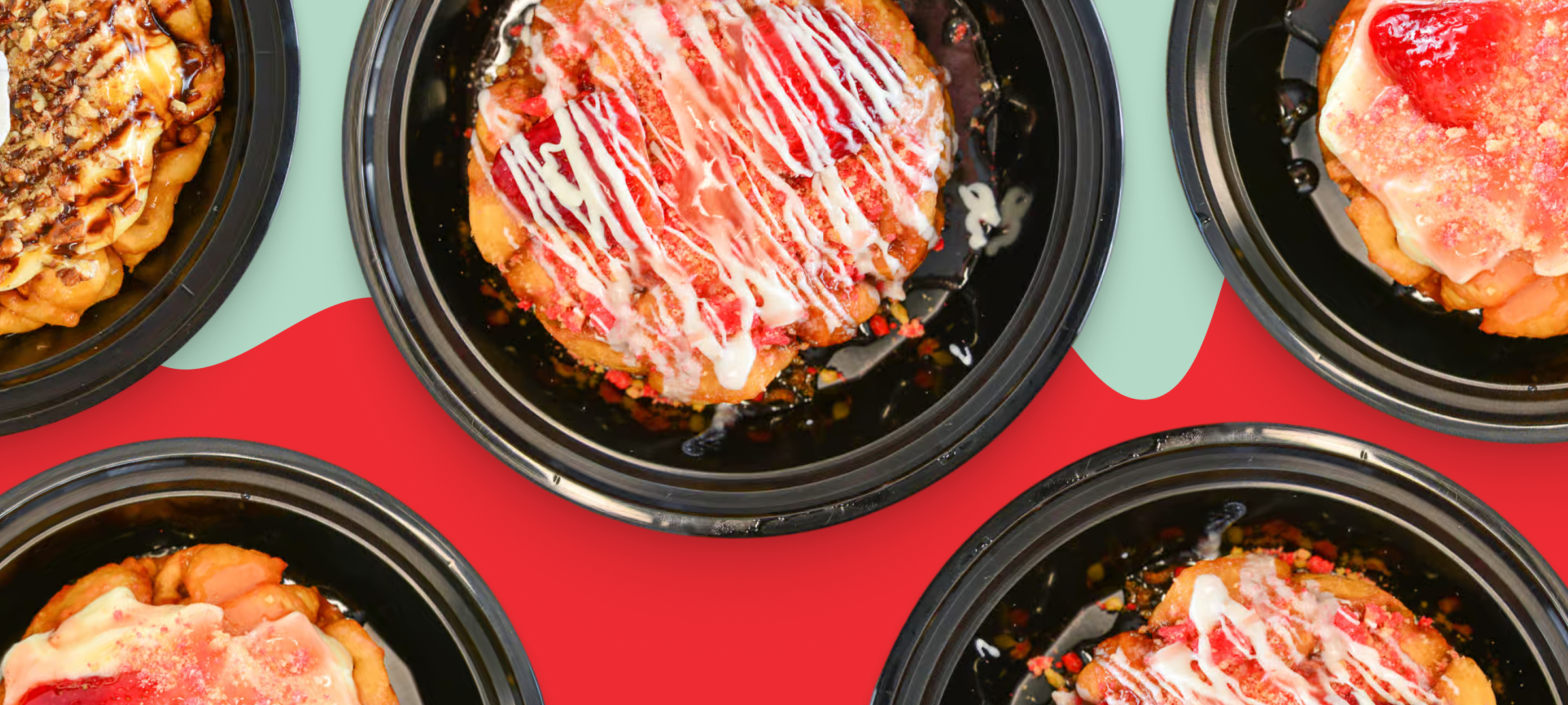We’re not your typical funnel cakes—our glazed, gourmet treats are a sweet twist on the classic!